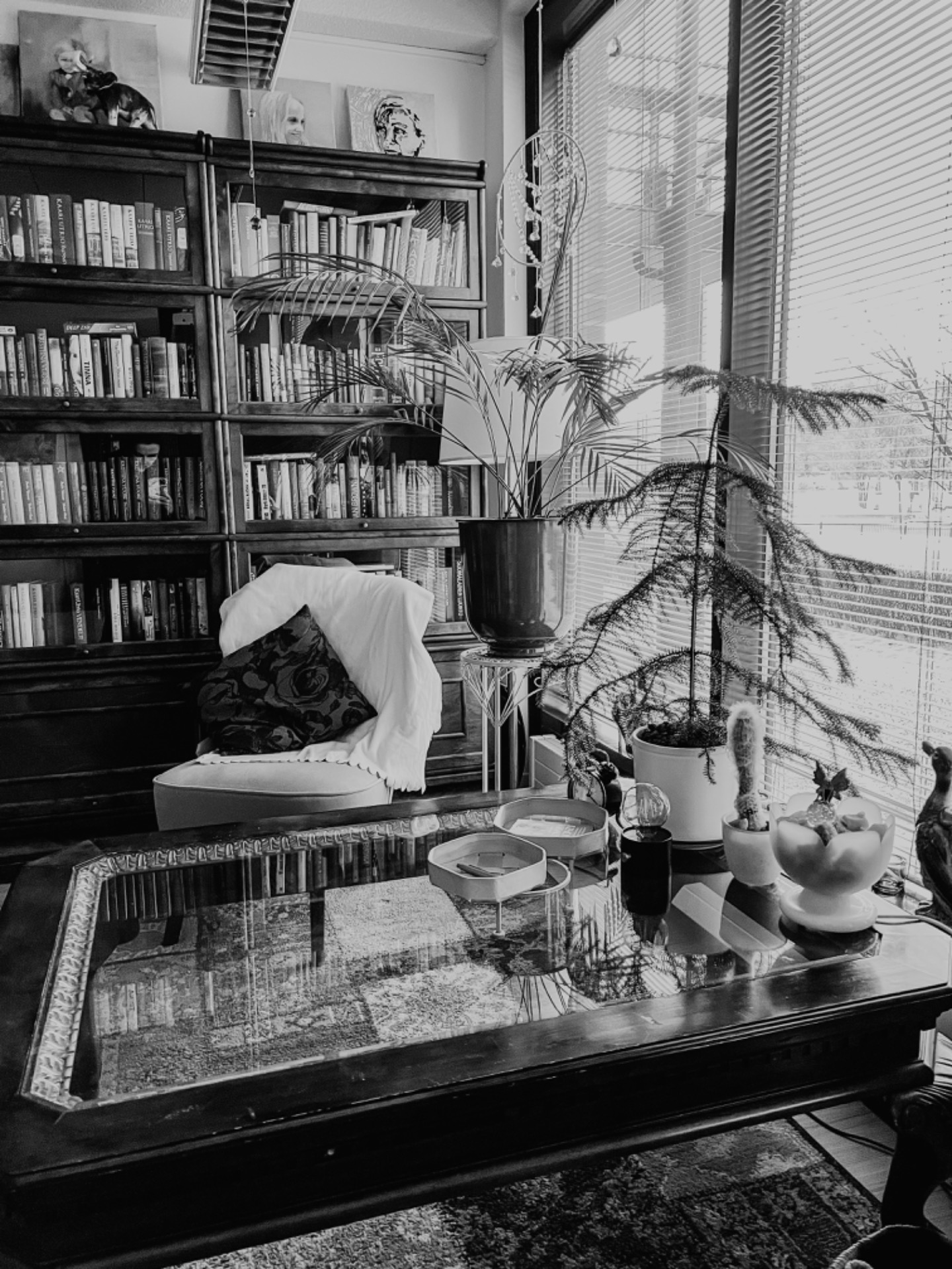 Kevät nojaa kaihtimiin, valo siivilöityy huoneeseen kuin kysymys, johon en vielä vastaa.